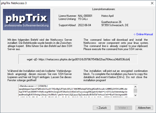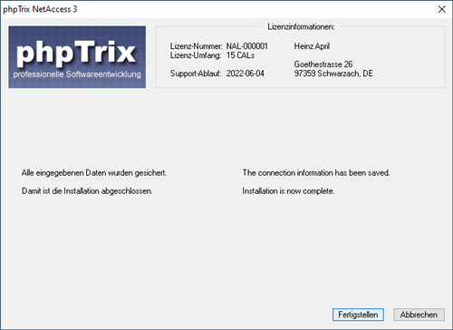Damit ist die Installation von phpTrix NetAccess abgeschlossen.